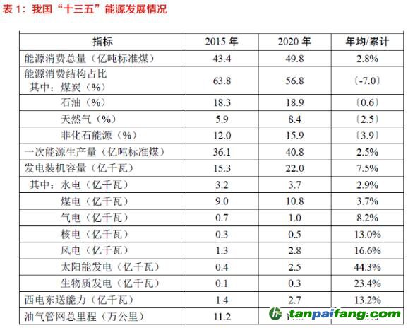 發(fā)布的《“十四五”現(xiàn)代能源體系規(guī)劃》同時(shí)提出了“十四五”時(shí)期現(xiàn)代能源體系建設(shè)的主要目標(biāo):到2025 年,國內(nèi)能源年綜合生產(chǎn)能力達(dá)到 46 億噸標(biāo)準(zhǔn)煤以上,原油年產(chǎn)量回升并穩(wěn)定在 2 億噸水平,天然氣年產(chǎn)量達(dá)到 2300 億立方米以上,發(fā)電裝機(jī)總?cè)萘窟_(dá)到約 30 億千瓦。單位 GDP 二氧化