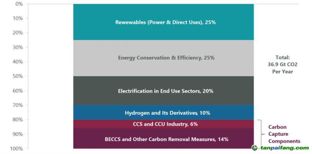 一項(xiàng)重大任務(wù)將意味著巨大的市場(chǎng)機(jī)會(huì)。據(jù)國(guó)際可再生能源機(jī)構(gòu)(IRENA)對(duì)達(dá)成 1.5 ° C 氣候目標(biāo)所需途徑的分析報(bào)告,約有 20% 的減碳份額涉及碳捕獲。即每年需要通過碳捕獲去除 7.38 Gt 的二氧化碳(7,380,000,000 噸)。而在碳的