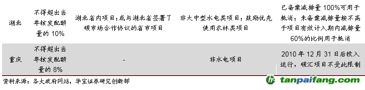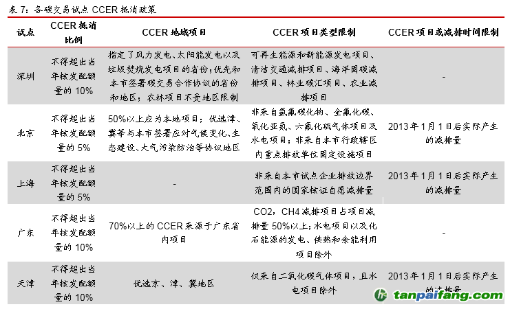 各試點(diǎn)實(shí)行不同抵消機(jī)制,抵消比例5%-10%之間。各試點(diǎn)均以CCER作為碳排放抵消指標(biāo),但抵消比例不同。北京、上海試點(diǎn)CCER抵消使用比例不得超過當(dāng)年核發(fā)配額量的5%;天津試點(diǎn)抵消使用比例不超過當(dāng)年實(shí)際排放量的10%;深圳、湖北試點(diǎn)抵消使用比例不超過配額量的10%;廣東的CCER抵消使用比例不超過企業(yè)上年度實(shí)際排放量的10%;重慶抵消使用比例不超過審定排放量的8%。 本+文內(nèi).容.來.自:中`國`碳`排*放*交*易^網(wǎng) ta np ai fan g.com