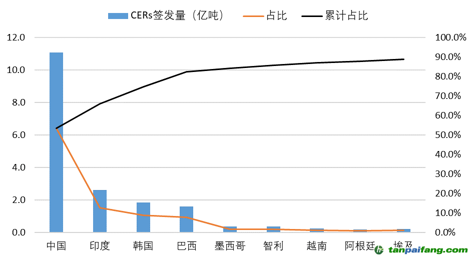 簽發(fā)的CERs的主要來源國