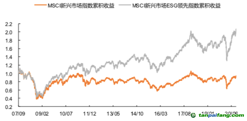 根據(jù)平安證券研報,MSCI全球ESG領(lǐng)先指數(shù)近五年年化收益率為10.3%,高于基準(zhǔn)MSCI全球指數(shù)2.5個百分點。新興市場的ESG超額收益相對發(fā)達(dá)市場更加顯。從近十年年化收益率來看,MSCI新興市場ESG領(lǐng)先指數(shù)(5.9%)收益高于基準(zhǔn)指數(shù)(-0.1%)。 本文+內(nèi)-容-來-自;中^國_碳+排.放_交^易=網(wǎng) t a n pa ifa ng .c om