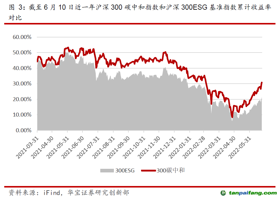滬深300碳中和指數(shù)從滬深300指數(shù)(4444.264, 49.49, 1.13%)(4444.2639, 49.49, 1.13%)樣本中剔除中證ESG評(píng)價(jià)在B及以下的上市公司證券,選取剩余證券作為指數(shù)樣本,依據(jù)中證碳評(píng)價(jià)對(duì)指數(shù)權(quán)重進(jìn)行調(diào)整,使指數(shù)碳強(qiáng)度以逐年遞減為目標(biāo),并相對(duì)滬深300降低20%,為投資者提供以“碳中和”為目標(biāo)的綠色業(yè)績(jī)基準(zhǔn)和投資標(biāo)的。從對(duì)比中可以發(fā)現(xiàn),同時(shí)考慮了ESG和國(guó)家降碳指標(biāo)篩選出的投資組合擁有更好的累計(jì)收益率,足見ESG治理對(duì)公司發(fā)展的重要性。 本文@內(nèi)/容/來/自:中-國(guó)-碳^排-放-交易&*網(wǎng)-tan pai fang . com