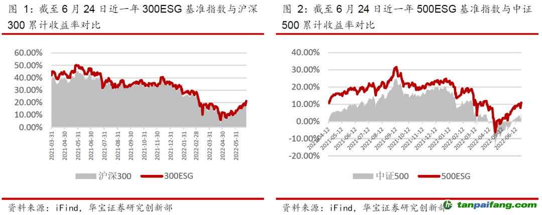 截至2022年6月底,滬深300 ESG基準(zhǔn)指數(shù)、中證500ESG基準(zhǔn)指數(shù)自2017年7月(基日)以來的累計(jì)收益分別比母指數(shù)高1.40%和6.79%。其中,年初以來,中證500 ESG基準(zhǔn)指數(shù)收益為-11.16%,比中證500指數(shù)(-13.41%)高2.25%。滬深300和中證500ESG基準(zhǔn)指數(shù)最新成份股中分別有78.72%和49.75%的上市公司采取了明確碳減排措施,平均社會(huì)貢獻(xiàn)值分別為472.06億元和43.9億元,均高于滬深300和中證500指數(shù)成份股,反映了ESG基準(zhǔn)指數(shù)相對(duì)母指數(shù)在ESG方面的優(yōu)異表現(xiàn)。 本*文@內(nèi)-容-來-自;中_國(guó)_碳^排-放*交-易^網(wǎng) t an pa i fa ng . c om