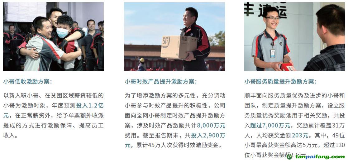 順豐積極落實國家七部委發(fā)布《關(guān)于做好快遞員群體合法權(quán)益保障工作意見》的號召,新增投入2億元以上專項資金,對服務(wù)質(zhì)量優(yōu)秀、業(yè)務(wù)達成突出的員工,給予現(xiàn)金及其他形式的獎勵,以提升員工的收入水平。 本`文@內(nèi)-容-來-自;中^國_碳0排0放^交-易=網(wǎng) ta n pa i fa ng . co m