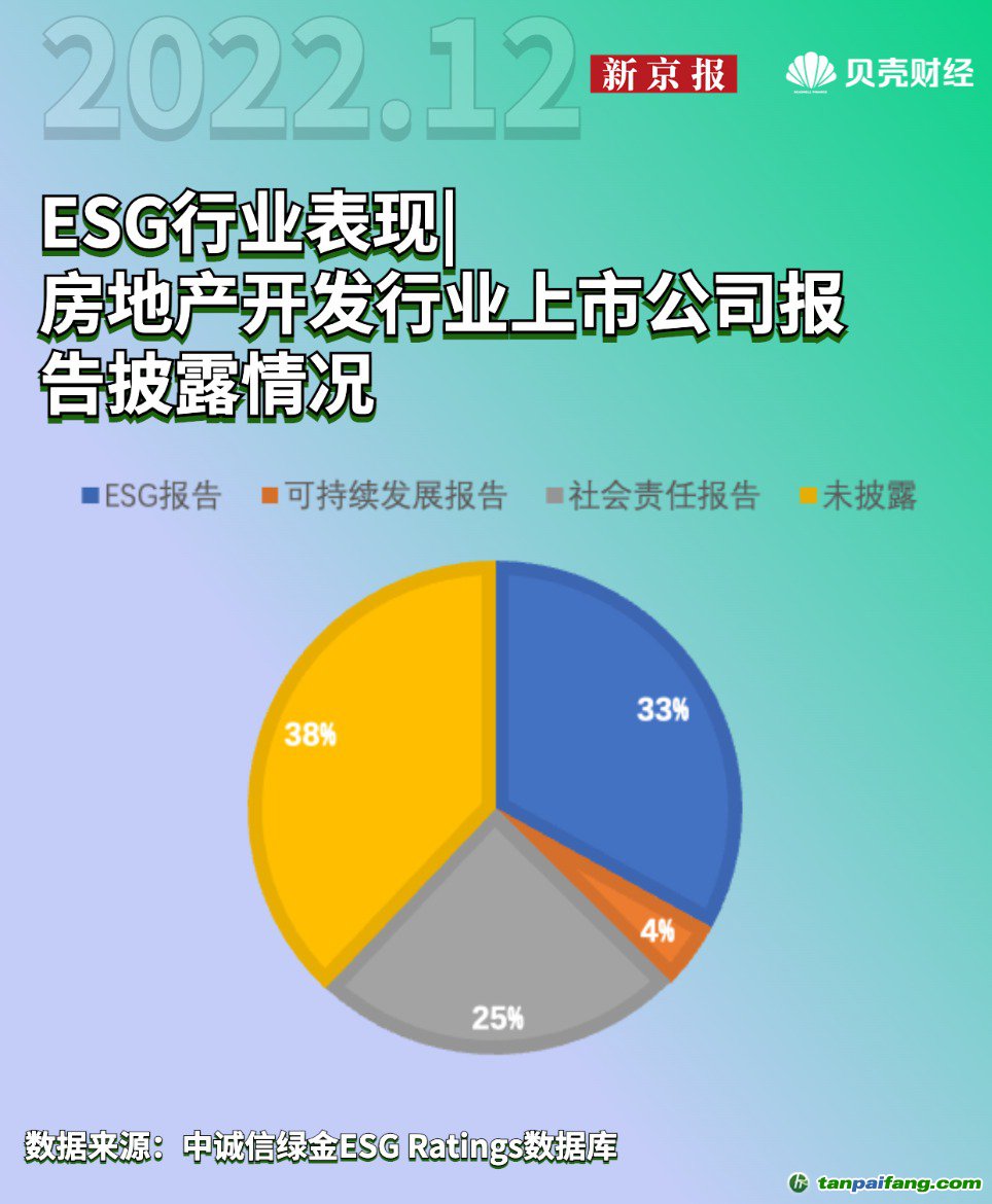 根據(jù)中誠信綠金統(tǒng)計,2021年度房地產(chǎn)開發(fā)行業(yè)A股和中資股上市公司共203家,126家披露了ESG相關(guān)報告,披露率為62.07%,其中披露ESG報告的共67家,披露社會責(zé)任報告共50家,披露可持續(xù)發(fā)展報告9家,77家企業(yè)未披露相關(guān)報告。 夲呅內(nèi)傛萊源亍:ф啯碳*排*放^鮫*易-網(wǎng) τā ńpāīfāńɡ.cōm