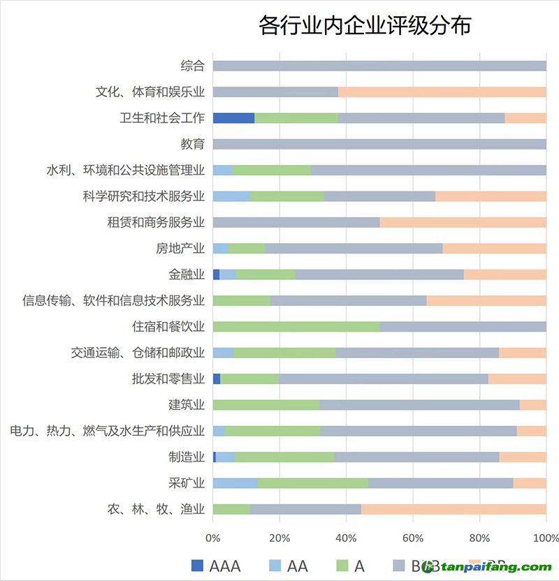 下圖顯示了各行業(yè)企業(yè)ESG評(píng)級(jí)結(jié)果的分布: