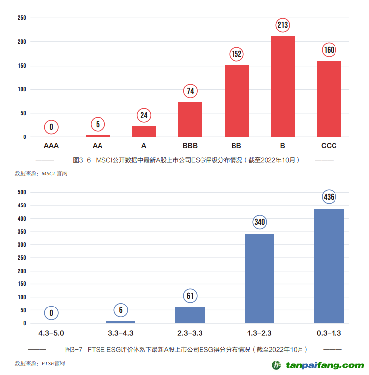 不過,值得注意的是,基于國際ESG評價框架下A股上市公司的ESG評級整體偏低,意味著A股公司想要參與國際市場則面臨一定挑戰(zhàn)。截至2022年10月,在獲得MSCI ESG評級的A股上市公司中,無一企業(yè)達到AAA級;評級為AA的企業(yè)僅有5家,占比0.80%;評級等級為B的公司數(shù)量最多,達213家,占比為33.92%;評級為CCC的公司有160家,占比25.48%。 禸*嫆唻@洎:狆國湠棑倣茭昜蛧 τāńpāīfāńɡ.cōm