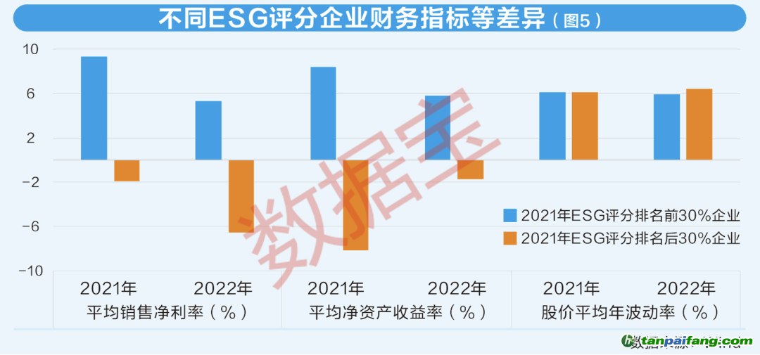 數(shù)據(jù)顯示,2021年Wind ESG平均分排名前30%的企業(yè)當(dāng)年及下一年的爭(zhēng)議事件平均分為2.88分和2.86分,比排名后30%的企業(yè)在相應(yīng)年份的平均分均要高。此外,2021年Wind ESG平均分前30%的企業(yè)當(dāng)年及下一年的股價(jià)平均年波動(dòng)率為6.12%和5.96%,均低于ESG評(píng)分后30%的企業(yè)的股價(jià)平均年波動(dòng)率。 內(nèi)/容/來/自:中-國(guó)-碳-排-放*交…易-網(wǎng)-tan pai fang . com