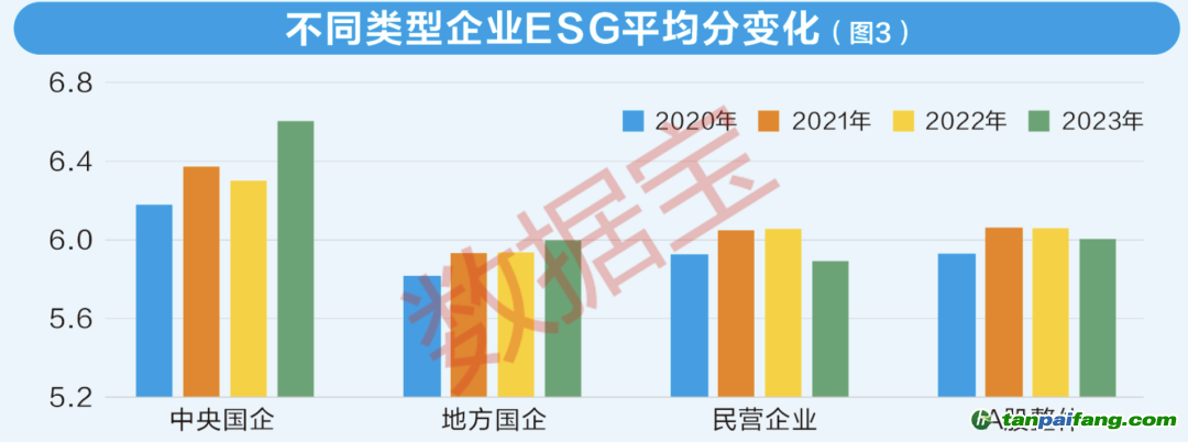 具體來看,央企ESG評(píng)分整體表現(xiàn)優(yōu)于地方國(guó)企、民企及A股整體水平。央企2023年Wind ESG平均分為6.6分,較2020底提升6.89%,無論是平均分還是提升幅度均高于地方國(guó)企、民企和A股整體水平(圖3)。 本`文@內(nèi)-容-來-自;中^國(guó)_碳0排0放^交-易=網(wǎng) ta n pa i fa ng . co m