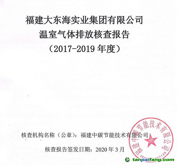 福建大東海實(shí)業(yè)集團(tuán)有限公司 2017-2019年 度溫室氣體排放核查報(bào)告
