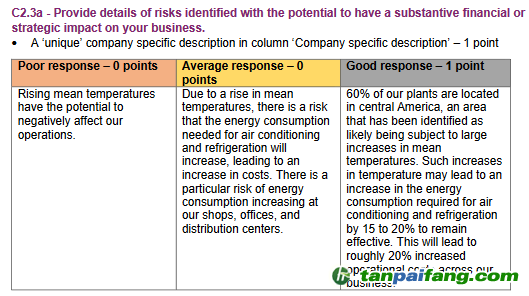 根據(jù)CDP評(píng)分方法,針對(duì)公司特殊性具體的回復(fù)比一般性陳述回復(fù)可獲得更高的分?jǐn)?shù)(如下圖)。 禸嫆@唻洎:狆國(guó)湠棑倣茭昜蛧 τāńpāīfāńɡ.cōm