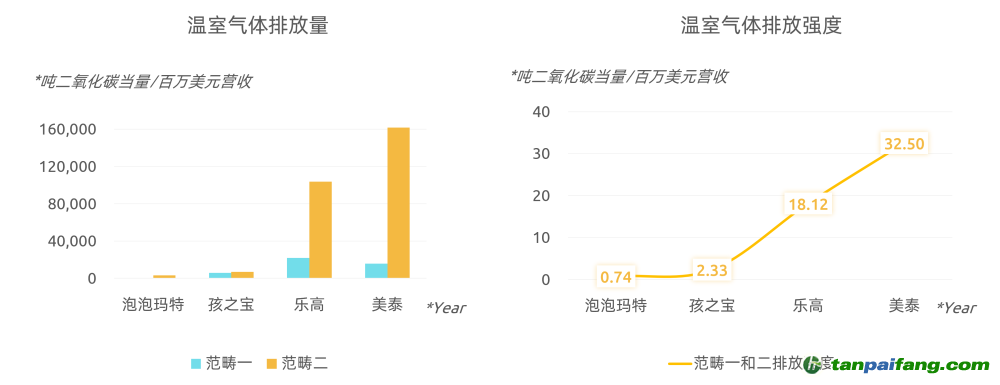圖:各玩具公司溫室氣體排放量和排放強度 本*文@內(nèi)-容-來-自;中_國_碳^排-放*交-易^網(wǎng) t an pa i fa ng . c om