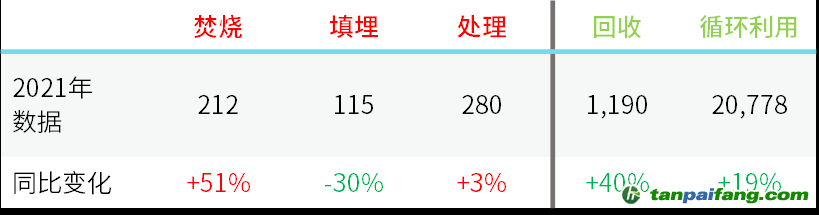 表:2021年樂高廢棄物處理情況(噸) 來源:樂高集團,妙盈科技 本`文-內(nèi).容.來.自:中`國^碳`排*放*交^易^網(wǎng) ta np ai fan g.com