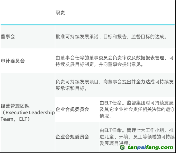 在過去的一年間,樂高的可持續(xù)治理結(jié)構(gòu)保持穩(wěn)定。在樂高,管理可持續(xù)發(fā)展事項的責(zé)任主要由公司的運營層來承擔(dān),由七位CXO級別的管理者組成的經(jīng)營管理團隊帶領(lǐng)。然而公司的審計委員會和董事會只負(fù)責(zé)審議和批準(zhǔn)可持續(xù)發(fā)展數(shù)據(jù)和承諾。 本`文@內(nèi)-容-來-自;中_國_碳排0放_交-易=網(wǎng) t an pa ifa ng . c om