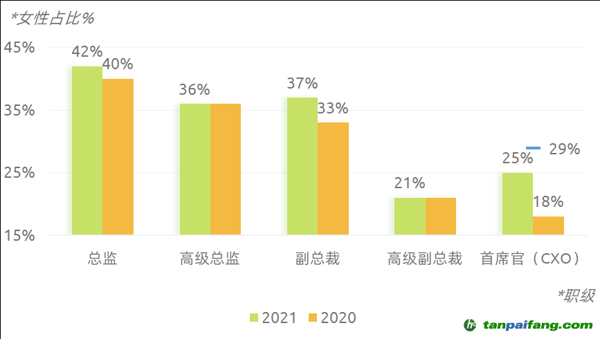 圖:各級別管理者種女性占比