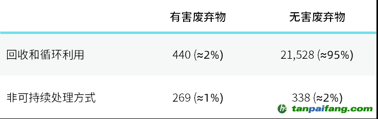 表:2021年樂高廢棄物處理情況(噸)