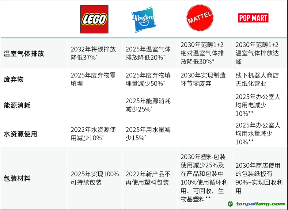 在廢棄物管理方面,樂高提出了最高的目標(biāo),要在2025年實現(xiàn)廢棄物零填埋,孩之寶的目標(biāo)是2025年廢棄物填埋量減少50%。盡管美泰提出了制造環(huán)節(jié)零廢棄的目標(biāo),但是期望到2030年實現(xiàn)。 本+文`內(nèi).容.來.自:中`國`碳`排*放*交*易^網(wǎng) t a np ai fan g.com