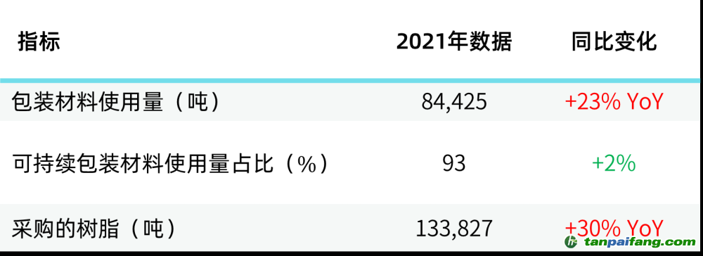 在2021年,樂高消耗了大約84噸包裝材料,相比2020年增加了23%,采購了134噸樹脂,同比增加30%。這與2021年公司27%的營收同比增長相符合。樂高使用的包裝材料中可持續(xù)包裝材料的占比自2018年跌至91%后數(shù)年,在2021年再次回到了93%。