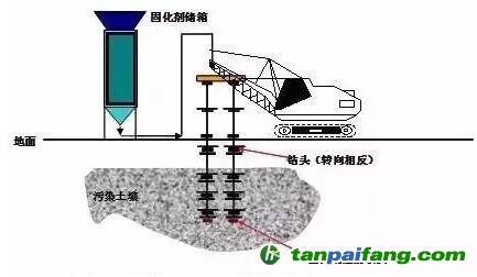 原理:通過一定的機(jī)械力在原位向污染介質(zhì)中添加固化劑/穩(wěn)定化劑,在充分混合的基礎(chǔ)上,
