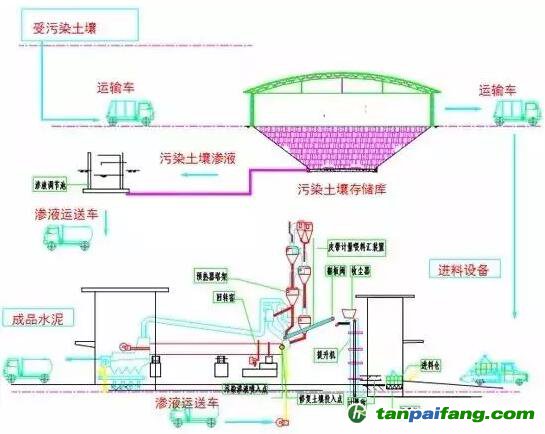 原理:利用水泥回轉窯內的高溫、氣體長時間停留、熱容量大、熱穩(wěn)定性好、堿性環(huán)境、無廢渣排放等特點,在生產水泥熟料的同時,焚燒固化處理污染土壤。