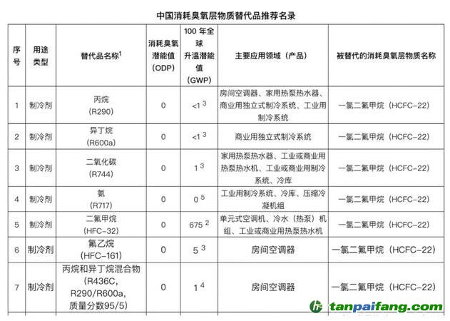 為了替代這種GWP值高達(dá)1810的制冷劑,《名錄》中推薦了七種消耗臭氧潛能值(ODP)為零且GWP值較小的綠色制冷劑,如丙烷、異丁烷、氨、二氧化碳等,涉及房間空調(diào)器、家用熱泵熱水器、工商制冷系統(tǒng)、冷庫、壓縮冷凝機(jī)組等應(yīng)用領(lǐng)域。這其中,特別是丙烷作為家用空調(diào)和熱泵熱水器的首選替代制冷劑,二氧化碳作為家用熱泵熱水器行業(yè)的推薦替代制冷劑備受矚目,為相關(guān)行業(yè)、企業(yè)研發(fā)和使用替代品提供了有益指導(dǎo)。