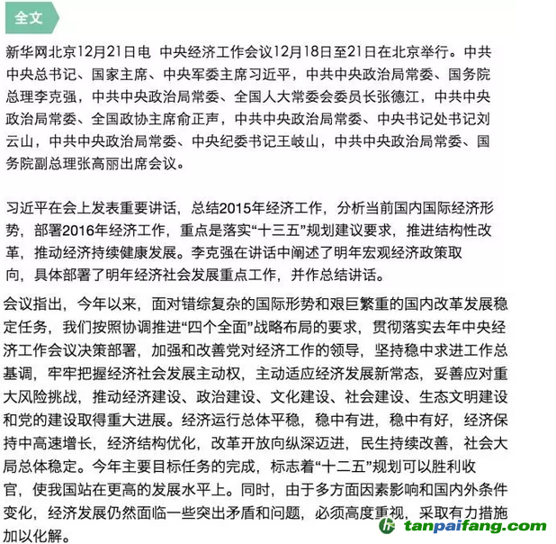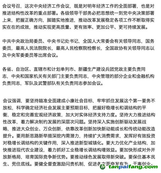 12月18日-21日,中央經(jīng)濟(jì)會(huì)議在京召開(kāi),在這樣一個(gè)“十二五”正收官,“十三五”即將開(kāi)局的時(shí)刻,此次會(huì)議的內(nèi)容也格外值得關(guān)注。能豆君在這里為大家簡(jiǎn)單標(biāo)畫(huà)了會(huì)議重點(diǎn),并收集了部分能豆粉的觀點(diǎn),也希望能在文末評(píng)論中看到大家的想法。