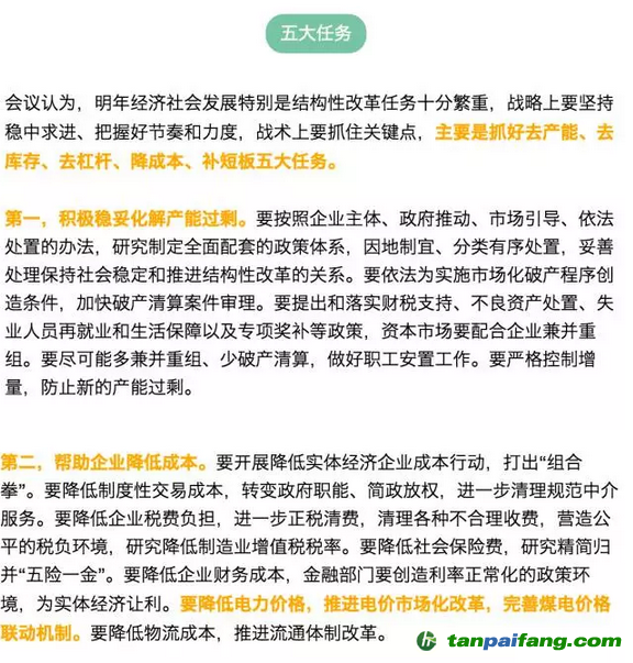 解決工業(yè)產(chǎn)能過(guò)剩、去庫(kù)存、去杠桿、降低企業(yè)成本、改善薄弱環(huán)節(jié)。 本文@內(nèi)/容/來(lái)/自:中-國(guó)-碳^排-放-交易&*網(wǎng)-tan pai fang . com