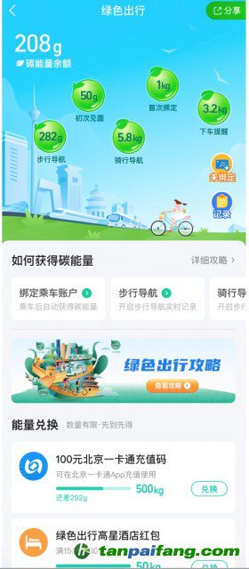 即日起,在北京市域范圍內(nèi),市民通過高德地圖等平臺使用騎行導(dǎo)航、步行導(dǎo)航或用公交、地鐵方式出行,均可獲得相應(yīng)的碳能量。市民個人賬戶中的碳能量既可用于公益性活動,也可在高德地圖等平臺內(nèi)兌換公共交通優(yōu)惠券、購物代金券、視頻會員等多樣化禮品。 本文@內(nèi)/容/來/自:中-國-碳^排-放-交易&*網(wǎng)-tan pai fang . com