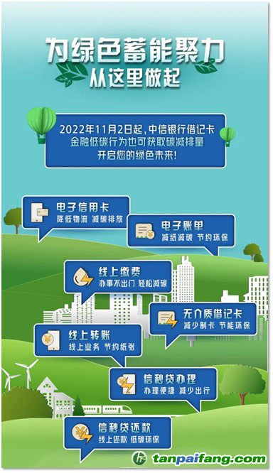 同期,圍繞綠色低碳理念,中信銀行正式發(fā)行“低碳財富卡”,該卡板采用PETG環(huán)保材質(zhì),用戶開卡后即同步激活“中信碳賬戶”,低碳行為累計個人碳減排量,每月歷歷在目。與此同時,持卡用戶可獲享中信銀行APP跨行匯款、信用卡還款費用減免,綠色商戶消費優(yōu)惠等權(quán)益,并可參與新客見面禮、財富進階禮的豐厚禮品回饋活動。本次中信銀行低碳財富卡的發(fā)布,是該行繼今年上半年圍繞廣大車主對于新能源汽車的巨大需求,正式推出首款新能源車主信用卡——中信銀行i車信用卡之后,再次發(fā)行的一款綠色低碳主題銀行卡產(chǎn)品,由此形成了“1個碳賬戶 + 2款低碳主題卡”的產(chǎn)品經(jīng)營體系,拓展該行“綠·信·匯”低碳生態(tài)平臺建設,發(fā)揮產(chǎn)業(yè)鏈和生態(tài)圈的協(xié)同效應,推動社會生活向綠色低碳轉(zhuǎn)型,助力我國“雙碳”目標的實現(xiàn)。 本文+內(nèi)-容-來-自;中^國_碳+排.放_交^易=網(wǎng) t a n pa ifa ng .c om