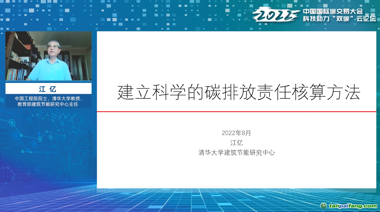 主旨演講環(huán)節(jié)中,中國工程院院士、清華大學(xué)教授、清華大學(xué)建筑節(jié)能研究中心主任江億發(fā)表主旨演講,他建議要建立科學(xué)的碳排放責(zé)任核算方法,強(qiáng)調(diào)“生產(chǎn)側(cè)抓強(qiáng)度,消費(fèi)側(cè)抓總量”是碳排放總量總量控制的重要原則。未來應(yīng)進(jìn)一步推進(jìn)碳排放責(zé)任核算方法的深入論證和國際交流,建立產(chǎn)品基準(zhǔn)值分類和數(shù)據(jù)統(tǒng)計(jì)體系,采用“基準(zhǔn)值法”開展生產(chǎn)側(cè)排放控制試點(diǎn)以及消費(fèi)側(cè)各地區(qū)減碳工作評價(jià)和控制試點(diǎn)等。