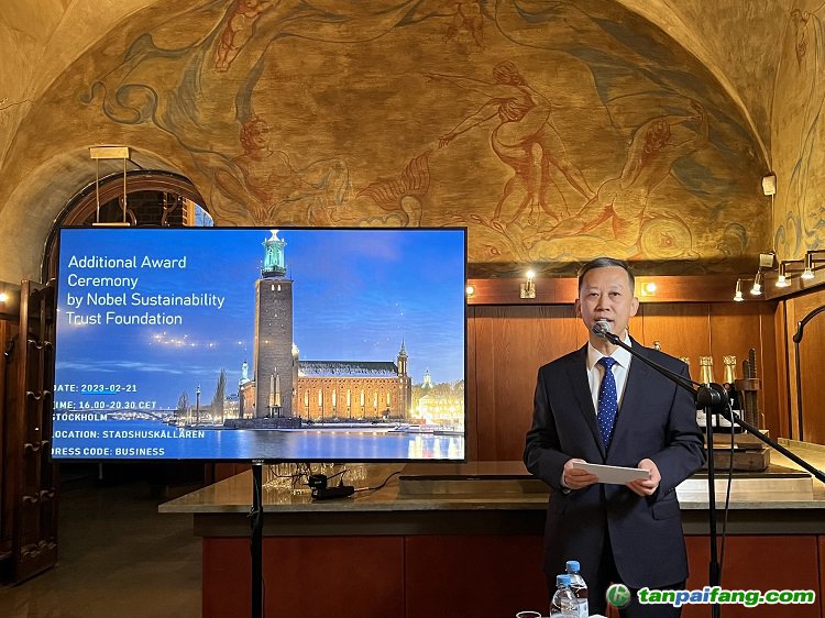 2023年2月21日,駐瑞典大使崔愛(ài)民出席諾貝爾可持續(xù)發(fā)展基金會(huì)頒獎(jiǎng)儀式,代表中國(guó)氣候變化事務(wù)特使解振華領(lǐng)取“可持續(xù)發(fā)展特別貢獻(xiàn)獎(jiǎng)”并在頒獎(jiǎng)儀式上致辭。科技參贊丁明勤、商務(wù)參贊韓曉東等參加活動(dòng)。 內(nèi).容.來(lái).自:中`國(guó)*碳-排*放*交*易^網(wǎng) t a npai fa ng.com