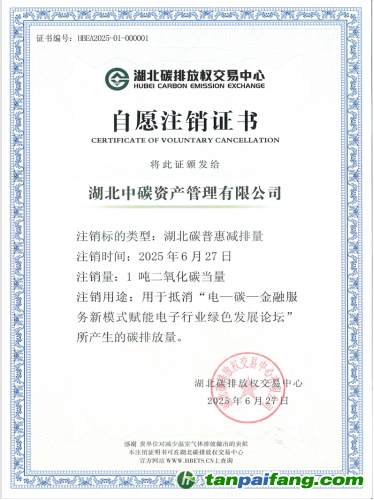 中碳資管自愿注銷1噸湖北碳普惠減排量,用于抵消本次綠色發(fā)展論壇產(chǎn)生的碳排放量,率先實現(xiàn)論壇碳中和目標,為綠色會議舉辦樹立示范樣板。 禸*嫆唻@洎:狆國湠棑倣茭昜蛧 τāńpāīfāńɡ.cōm