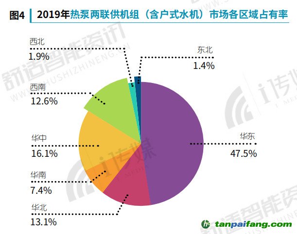 當(dāng)然,不能忽視的還有“上氟下水”這一形式的強(qiáng)勢崛起, 憑借在多聯(lián)機(jī)市場多年積累下的豐富渠道資源,地暖多聯(lián)機(jī)自推向市場以來,就呈現(xiàn)出了昂揚的搶占市場的態(tài)勢,特別是各多聯(lián)機(jī)企業(yè)加強(qiáng)著對于這一系統(tǒng)形式的重視,2019 年這一形式的熱泵兩聯(lián)供機(jī)組在市場的表現(xiàn)同樣不俗。當(dāng)然,更為進(jìn)階地“輻射式”系統(tǒng)也開始打開受眾群,特別是相關(guān)服務(wù)商在這一系統(tǒng) 形式上的成熟和成長,高端的用戶群對于更為極致的舒適性追求正讓這一形式的熱泵兩聯(lián)供挖掘到了增長點。