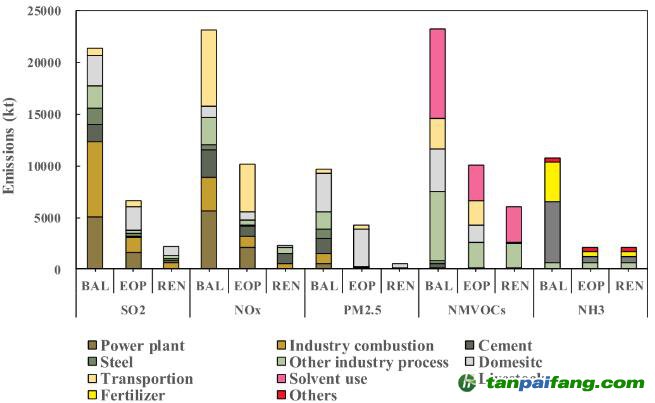 圖1: BAL、EOP及REM情景的減排結(jié)果分析