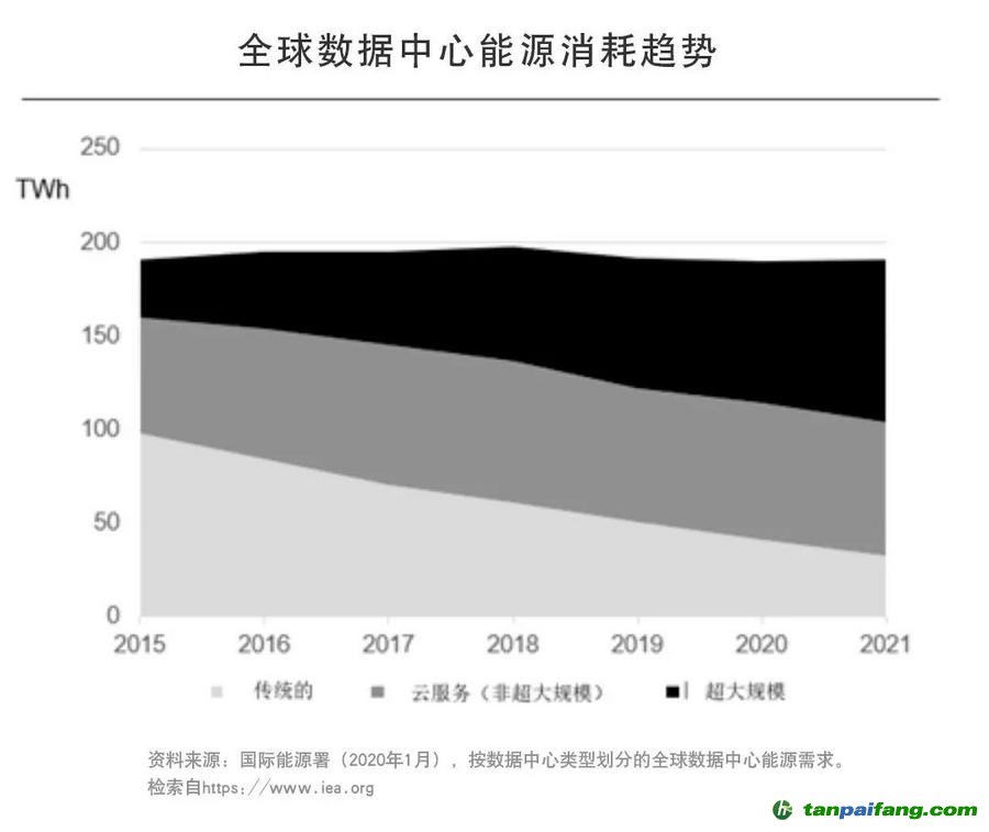 目前,全球的數(shù)據(jù)中心每年消耗約200TWh的電能,約占全球用電量的1%,但近年來,數(shù)據(jù)中心行業(yè)在提高能源效率方面取得重大進展,數(shù)據(jù)中心的能耗正趨于平穩(wěn),在滿足客戶大幅增長的服務(wù)需求的同時,實現(xiàn)穩(wěn)定的能源消耗。 本文@內(nèi)/容/來/自:中-國-碳^排-放-交易&*網(wǎng)-tan pai fang . com