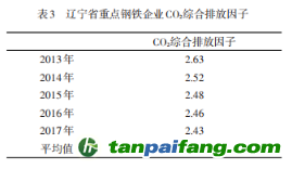 從前文可知,雖然遼寧省重點鋼鐵企業(yè)噸鋼能耗和碳排放都呈下降趨勢,但碳排放強度下降幅度更大,這也是鋼鐵企業(yè)綜合排放因子下降的原因,可以看出2013—2017年遼寧省節(jié)能減排工作取得了顯著成效。(表3) 本+文+內(nèi).容.來.自:中`國`碳`排*放*交*易^網(wǎng) t a np ai fan g.com