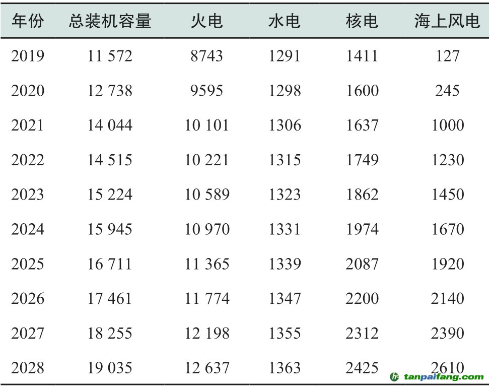 Table 2 Forecast of installed capacity in Guangdong Province from 2019 to 2028萬(wàn)kW