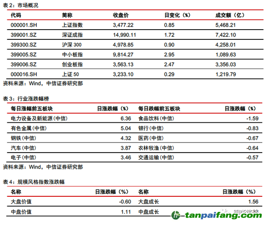 2021年8月4日,銀存間質(zhì)押式回購加權(quán)利率全面下行,隔夜、7天、14天、21天和1個月分別變動了-13.21bps、-0.32bp、-0.07bp、-2.16bps和-1.14bps至1.6909%、1.9749%、1.9953%、2.0207%和2.1195%。國債到期收益率全面上行,1年、3年、5年、10年分別變動1.76bps、1.86bps、1.16bps、0.01bp至2.1448%、2.5628%、2.6738%、2.8338%。8月4日上證綜指上漲0.85%至3,477.22,深證成指上漲1.72%至14,990.11,創(chuàng)業(yè)板指上漲2.47%至3,563.13。 本*文`內(nèi)/容/來/自:中-國-碳^排-放“交|易^網(wǎng)-tan pai fang . c o m