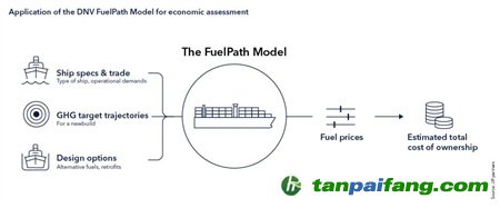 JIP 應(yīng)用 DNV FuelPath模型來評估設(shè)計方案的經(jīng)濟性能,即特定船舶可用的燃料和能源效率策略?;诓煌募僭O(shè)和情景,該模型可幫助船東確定能夠適應(yīng)未來變化并在船舶生命周期內(nèi)各種情景下都能表現(xiàn)良好的設(shè)計方案。績效以總擁有成本和其他經(jīng)濟參數(shù)來表示。由于未來的燃料價格難以預(yù)測,因此該研究考慮了三種不同的燃料價格情景(高、基線、低)。 本文+內(nèi)-容-來-自;中^國_碳+排.放_交^易=網(wǎng) t a n pa ifa ng .c om