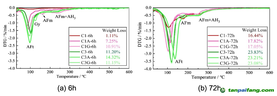 圖2 硬石膏(A)/石膏(G)對熟料水化產(chǎn)物的影響 本`文-內(nèi).容.來.自:中`國^碳`排*放*交^易^網(wǎng) ta np ai fan g.com