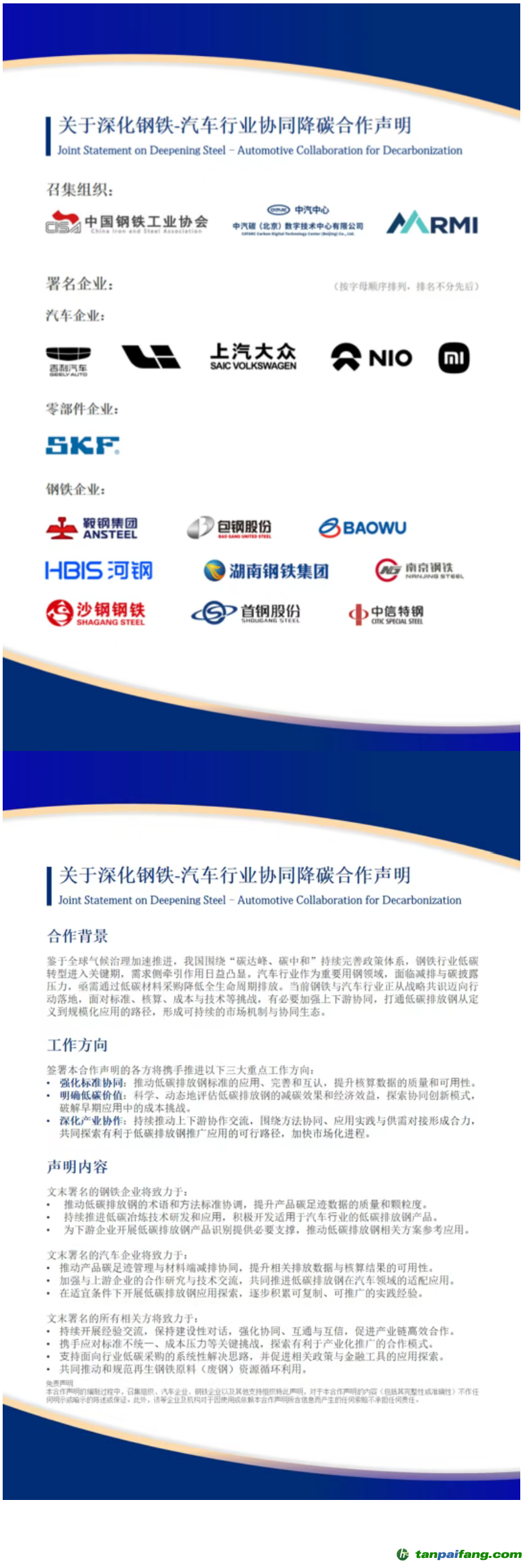 關(guān)于深化鋼鐵-汽車行業(yè)協(xié)同降碳合作聲明: