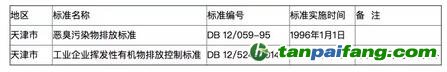 1.天津市地方標(biāo)準(zhǔn),主要有2個,一個是制定于1996年的《惡臭污染物排放標(biāo)準(zhǔn)》,另一個是制定于2014年的《工業(yè)企業(yè)揮發(fā)性有機物排放標(biāo)準(zhǔn)》,制定時間都早于北京。