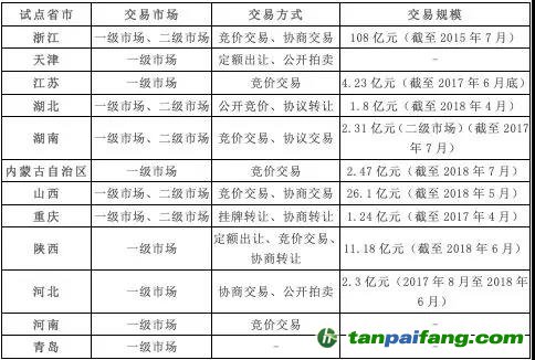 下表是根據(jù)可以獲得的信息和數(shù)據(jù)整理出的12個政府批復試點省市的交易情況: