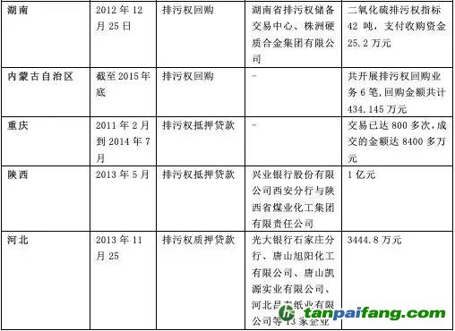 表2:排污權(quán)試點省市融資工具情況