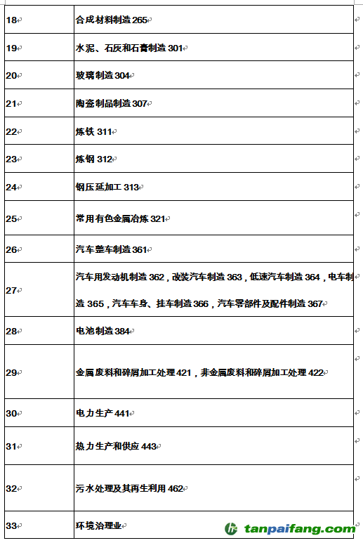 8月30日前應申領排污許可證的87個行業(yè)類別: 本/文-內(nèi)/容/來/自:中-國-碳-排-放-網(wǎng)-tan pai fang . com