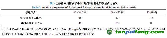 機(jī)組的排放水平除與是否加裝SCR脫硝系統(tǒng)密切相關(guān)以外,還與機(jī)組容量等級有關(guān),如表3所示。以江蘇省為例,在50~>40檔和40~>30檔的燃?xì)獍l(fā)電機(jī)組中,F(xiàn)級機(jī)組數(shù)量占比更大;在30~20檔的燃?xì)獍l(fā)電機(jī)組中,E級機(jī)組數(shù)量占比更大,F(xiàn)級機(jī)組數(shù)量僅占17%(這類機(jī)組已加裝SCR脫硝系統(tǒng))。 內(nèi).容.來.自:中`國*碳-排*放*交*易^網(wǎng) t a npai fa ng.com