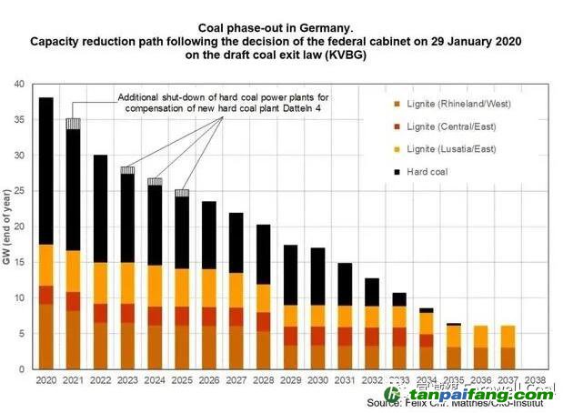 圖片說(shuō)明:德國(guó)退煤進(jìn)程年度計(jì)劃去除的煤電產(chǎn)量(褐煤和硬煤) 圖片來(lái)源:每日頭條