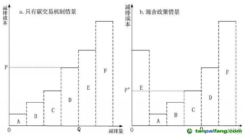 因此全社會總的減排目標(biāo)(或碳市場的配額)確定后,再引入其他政策工具有可能使有效碳價格水平降低,甚至導(dǎo)致碳市場價格