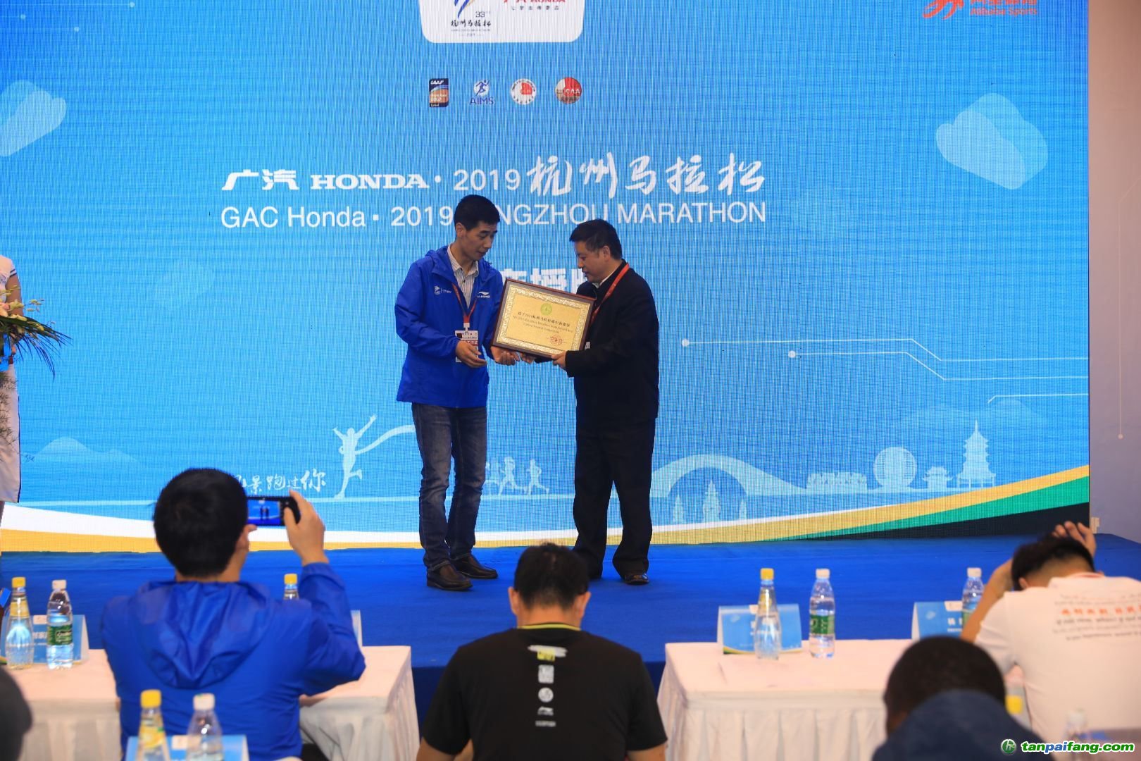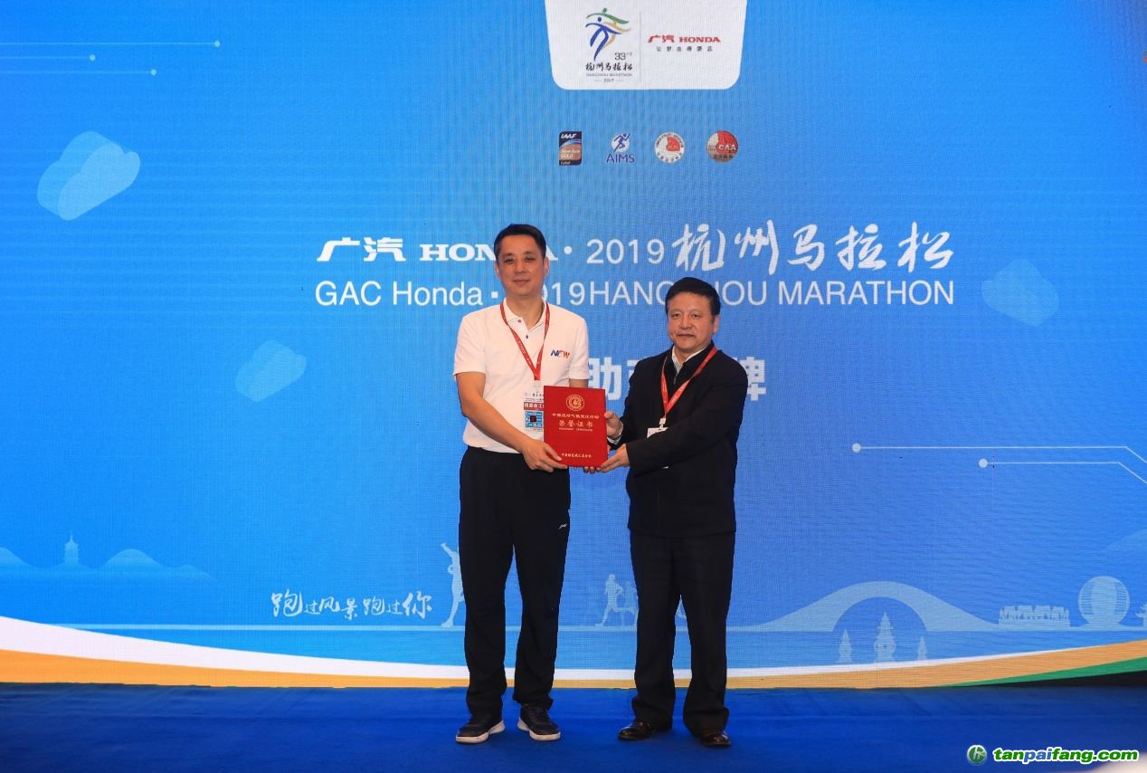 圖為劉家順秘書長向主辦方授予碳中和榮譽證書及碳中和賽事牌匾。 禸嫆@唻洎:狆國湠棑倣茭昜蛧 τāńpāīfāńɡ.cōm