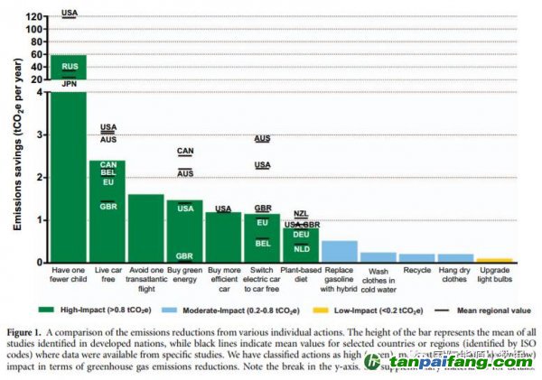 綠色能源、騎自行車出行、避免跨大洋的旅行。特別是如果少生一個(gè)孩子,減排效果更大。
